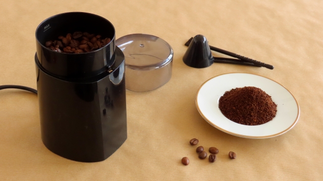 モーニングコーヒーや休憩で手軽に挽きたてのコーヒーを楽しみたい方に向いている電動コーヒーミルです。